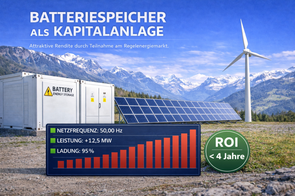 Der Schweizer Regelenergiemarkt vergütet flexible Leistung, die kurzfristig zur Stabilisierung des Stromnetzes bereitgestellt wird. Batteriespeicher sind dafür ideal geeignet: Sie reagieren innerhalb von Sekunden und können präzise Leistung bereitstellen. Diese technischen Eigenschaften machen sie zu einer der attraktivsten Anlagen für die Vermarktung von Regelenergie.